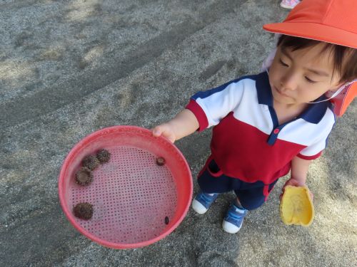 ドングリや木の葉を見付けると